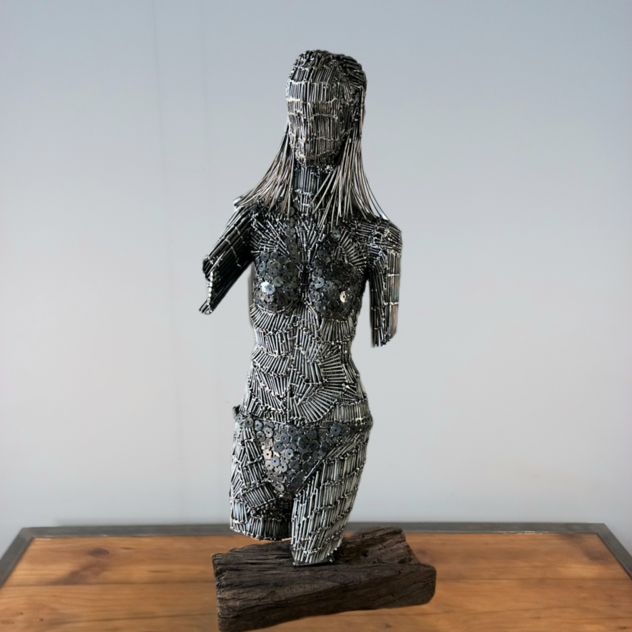 Joggie Kotzè, affectionately known as the "Man van Staal" (Man of Steel), embarked on his artistic journey in 2022 at the age of 45 in Thabazimbi. With remarkable skill, he breathes new life into discarded steel, vehicle, and machinery parts, and various mechanical components, fashioning them into extraordinary artworks. His guiding principle, "Everyone deserves a second chance," resonates deeply in his creations, where all materials were once deemed unusable scrap metal.
